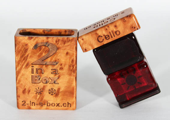 L'étui 2-in-a-box est fait dans un beau bois moucheté de Thuya. Disponible en deux versions: